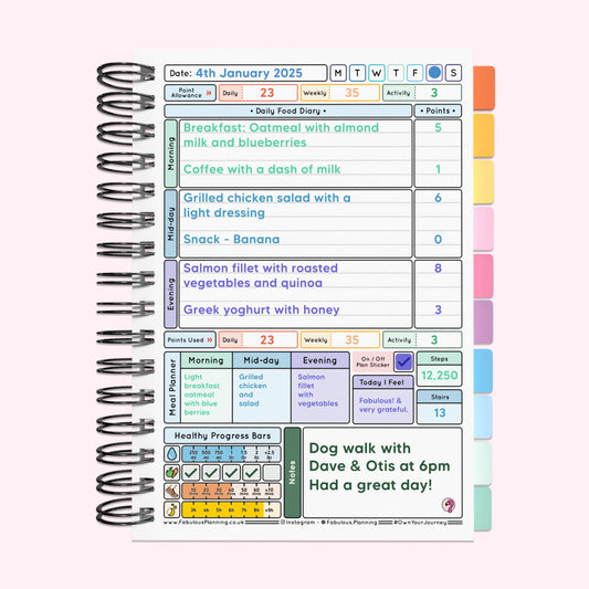 Each diary comes with health & wellness pages, and is available in 7 Weeks, 3 Months and 6 Month durations.