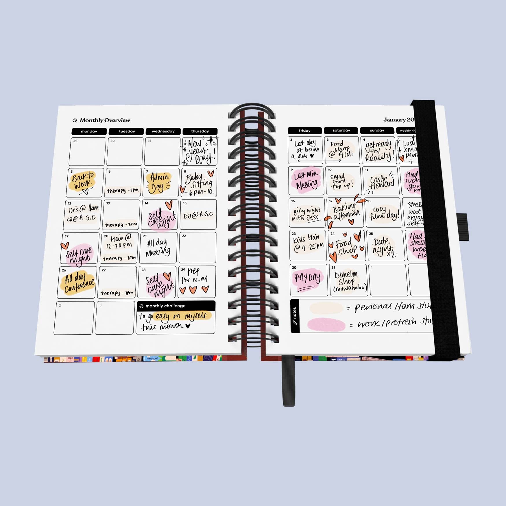 Comes with our popular Monthly Overviews, Vision Boards, Note Pages - this Spiral Journal is the perfect Journal to keep you organised.