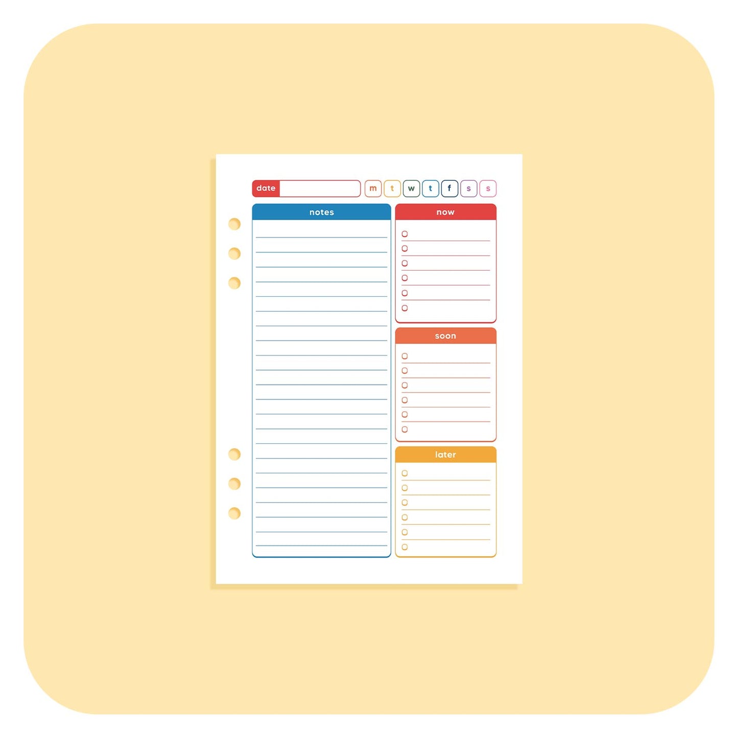 Unleash your creativity with our A5 Insert - Agenda Pages! Perfect splitting your busy to-do's into easy to achieve sections, with space for you to write larger notes. It's a must for busy people.