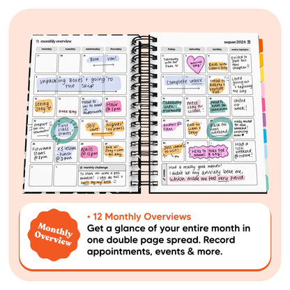 Our highly beloved Monthly Overview is back and it's even better than before! Plan out your entire month in a double page spread, with more space for weekly highlights, notes, and more.
