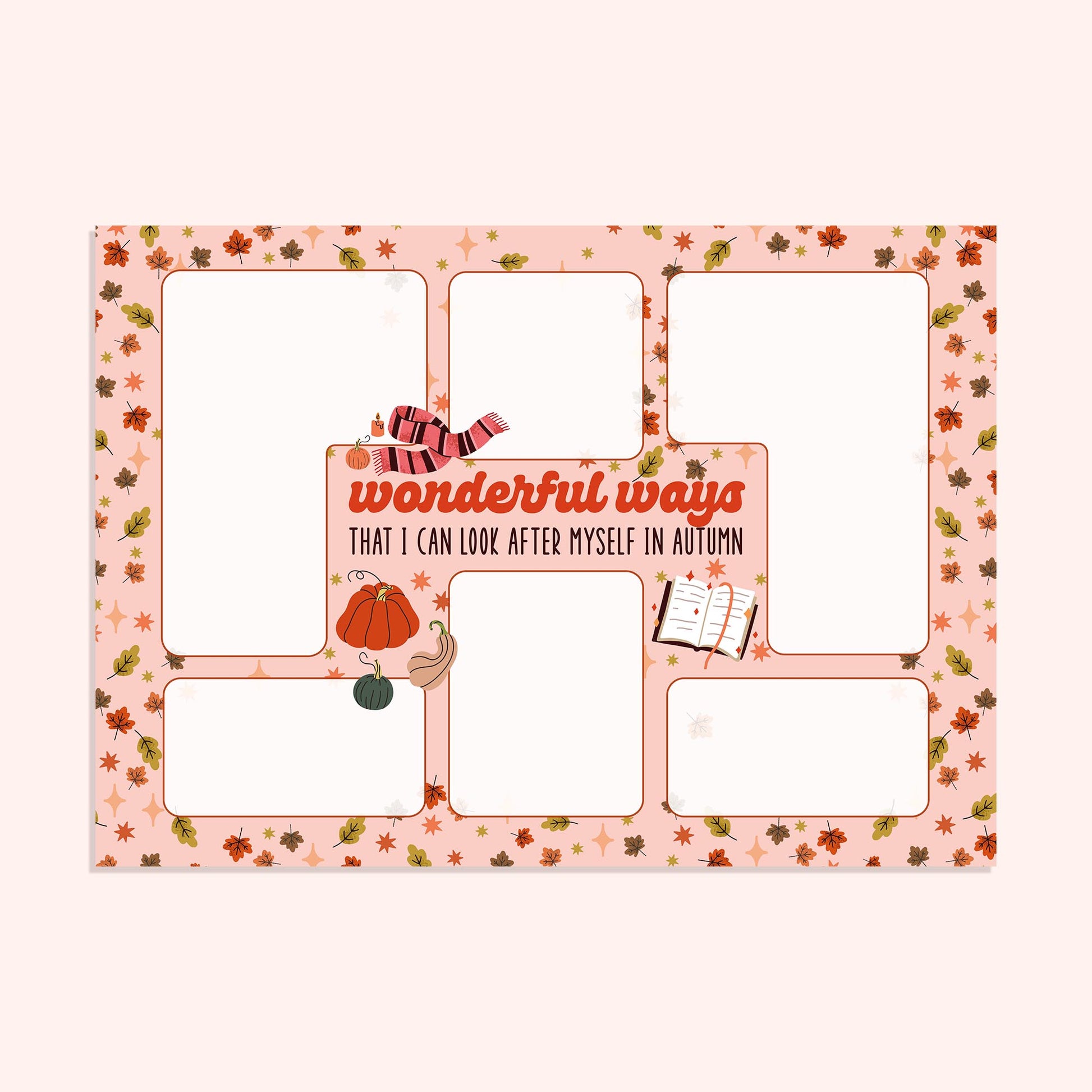 On the back of each journaling board you'll see guided prompts that will help inspire, uplift and motivate you to fill in your board with an abundance of self-care ideas, or if you fancy, an added bonus for your journal!