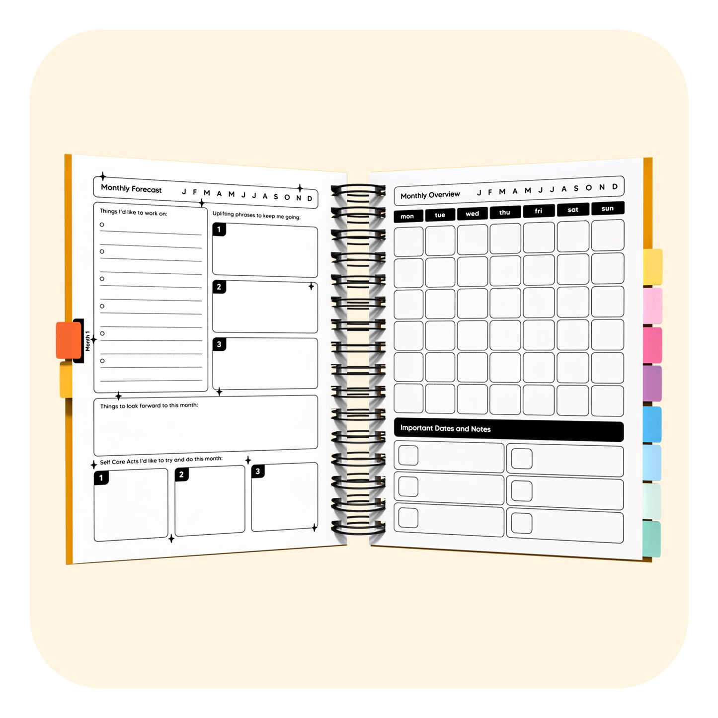 Track your mood across an entire year with the included pixel tracker. Record what's important to you, your specific emotions & feelings. Create a colourful map of your highs & lows, spot trends as they form and work on them throughout the Journal.