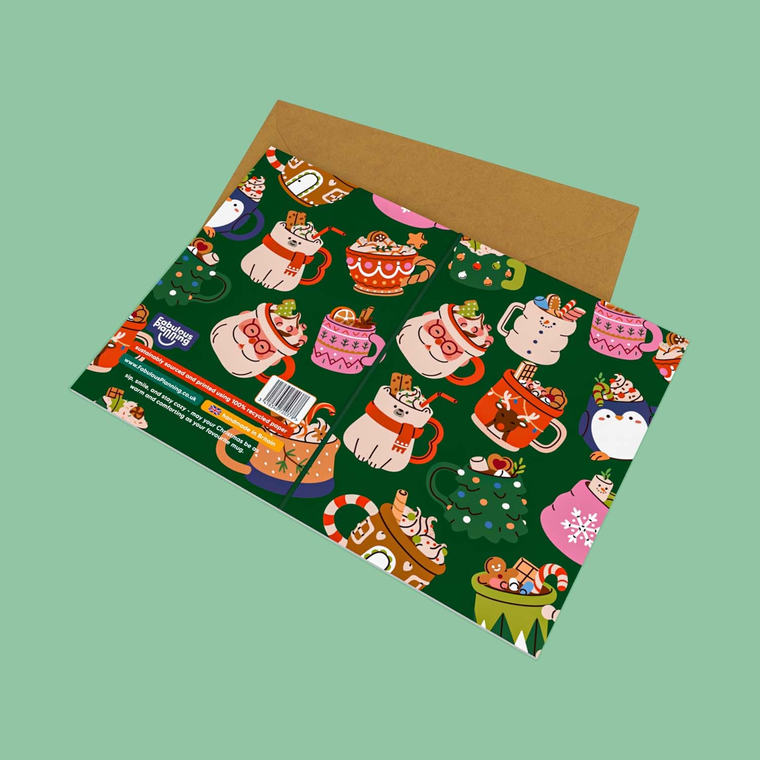 Mini Greeting Card - Festive Mugs - Green