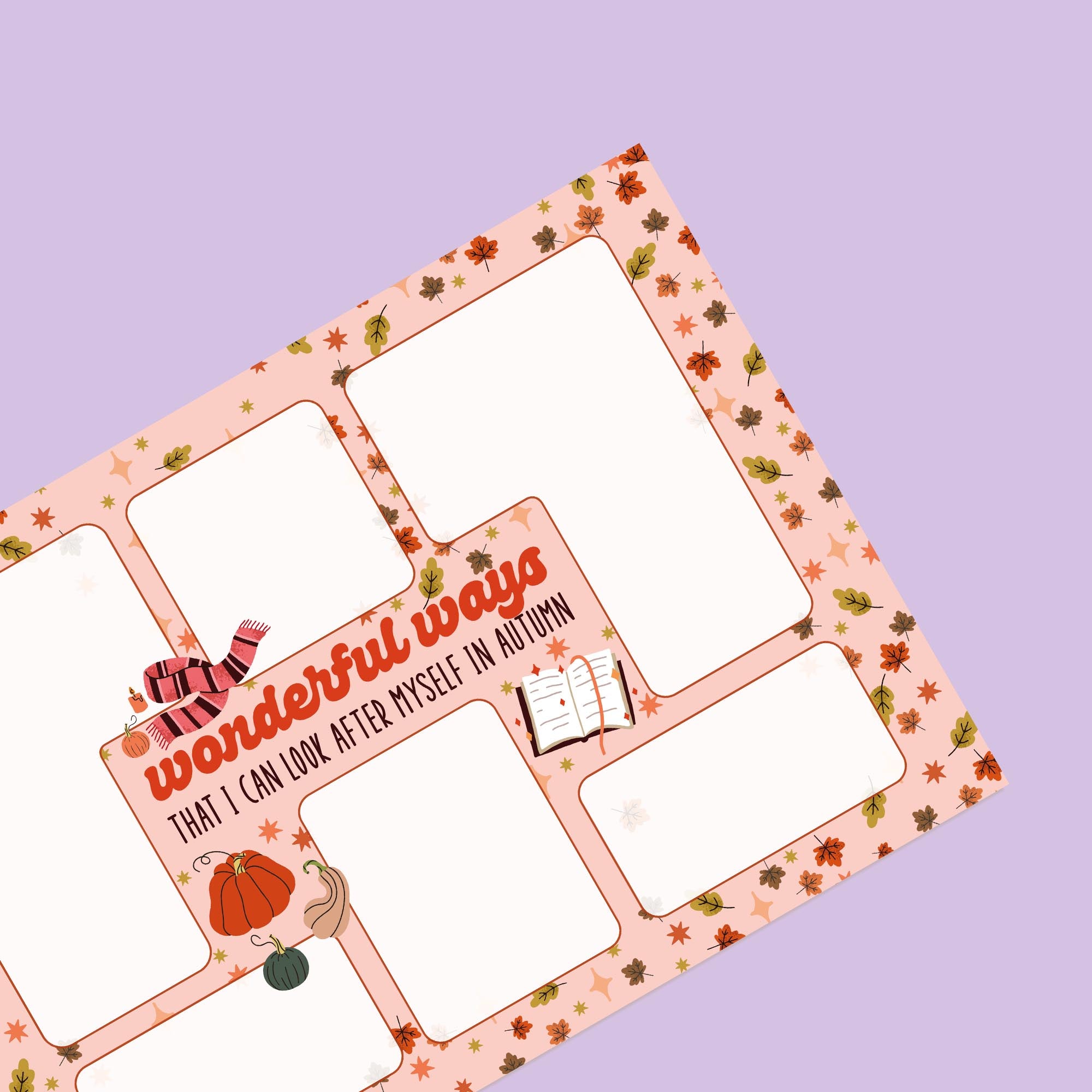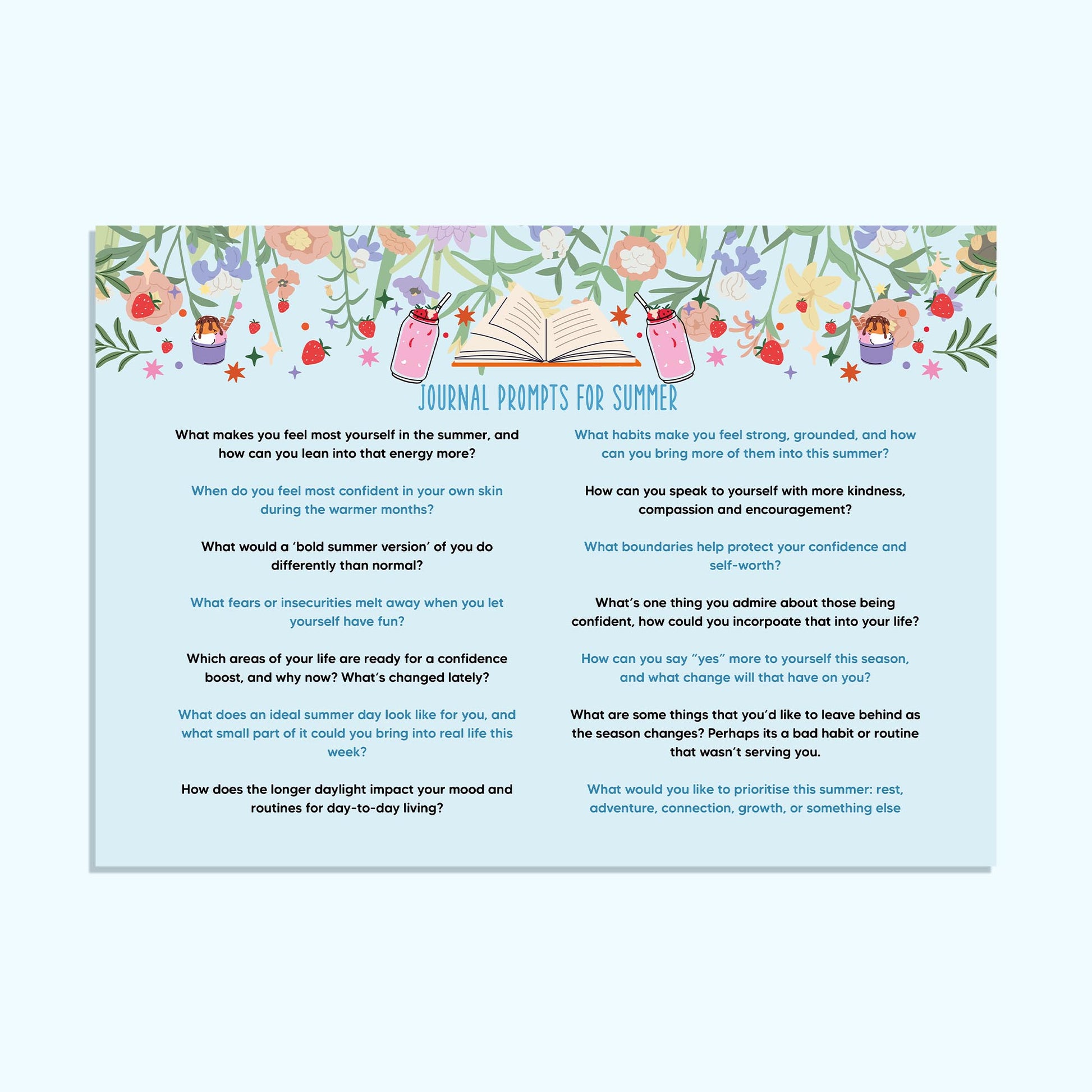 On the back of each journaling board you'll see guided prompts that will help inspire, uplift and motivate you to fill in your board with an abundance of self-care ideas, or if you fancy, an added bonus for your journal!