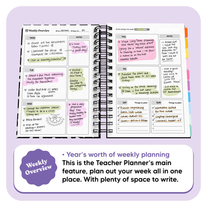 Designed with you in mind, your feedback and input has created the ultimate Teacher Planner. Schedule your meetings, make monthly to-do's, plan your weeks in advance, section off time for your wellness, and plan your terms and SO much more.. on YOUR terms. (see what we did there?)